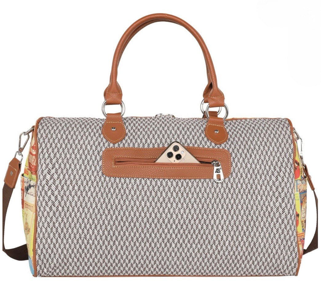 - Inside of the bag includes a zippered pocket and 2 open pockets